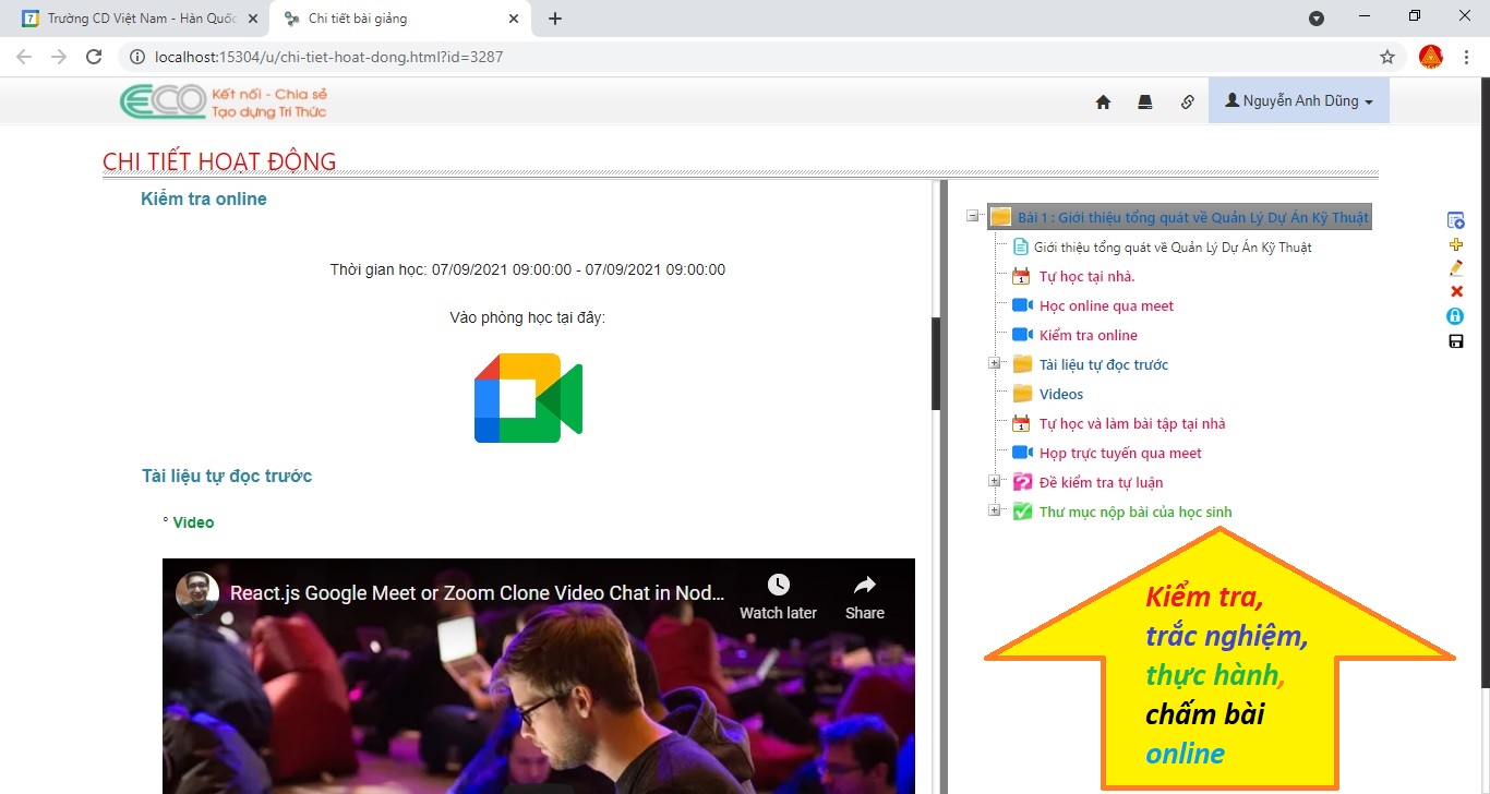 MỘT SỐ HÌNH ẢNH, TÍNH NĂNG VƯỢT TRỘI CỦA PHẦN MỀM ĐÀO TẠO TRỰC TUYẾN